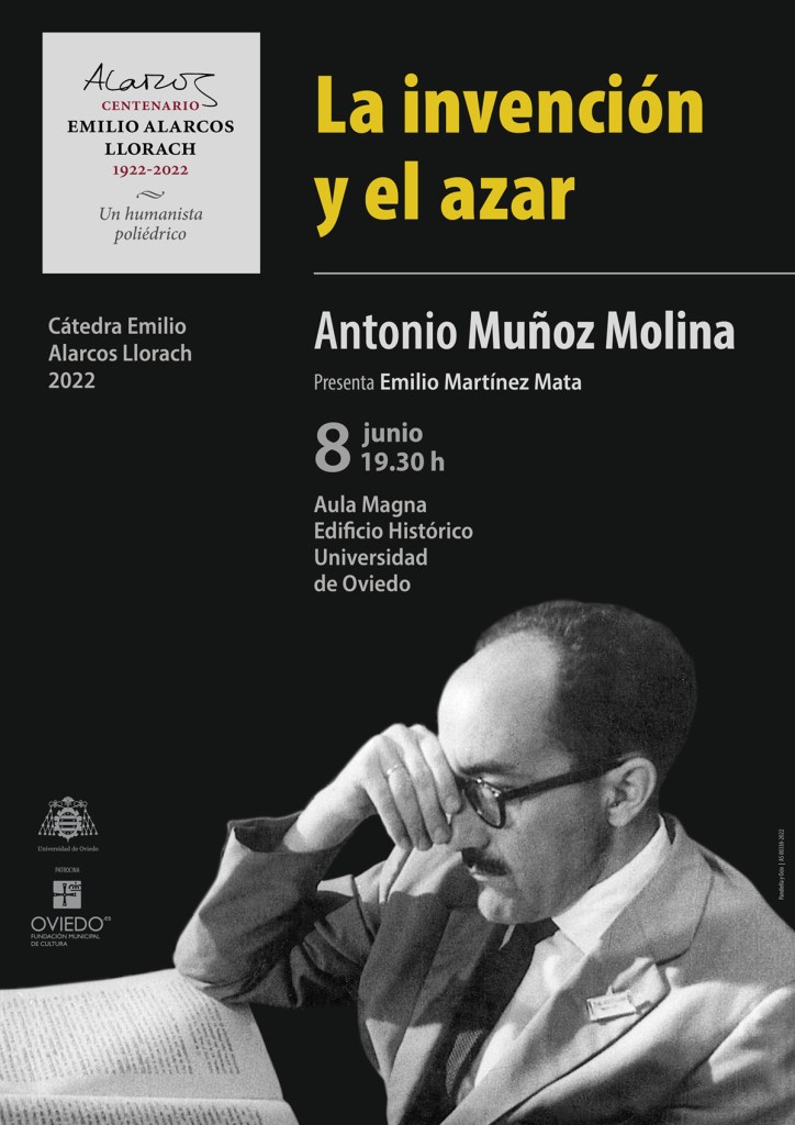 Continúan las conferencias programadas por la Cátedra en el «Año Alarcos». Para el mes de junio ha invitado a Antonio Muñiz Molina, escritor y académico de número de la Real Academia Española, con el título La invención y el azar. Lo presenta Emilio Martínez Mata, catedrático de literatura de la Universidad de Oviedo. • Miércoles, 8 de junio de 2022 • 19.30 horas • Aula Magna. Edificio Histórico de la Universidad de Oviedo